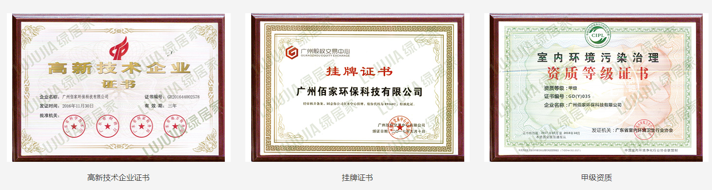 歷經(jīng)10余年發(fā)展,公司獲得諸多榮譽(yù):廣州股權(quán)交易中心掛牌證書、高新技術(shù)企業(yè)證書、室內(nèi)環(huán)境污染治理甲級資質(zhì)等級證書、“可見光納米催化產(chǎn)品”獲科技創(chuàng)新產(chǎn)品獎、“納米光觸媒技術(shù)的室內(nèi)空氣凈化材料”獲得高新技術(shù)產(chǎn)品榮譽(yù)、“基于WIFI室內(nèi)甲醛監(jiān)控空氣凈化器”獲得高新技術(shù)產(chǎn)品榮譽(yù)、3項(xiàng)誠信工程示范獎、環(huán)境管理體系認(rèn)證、質(zhì)量管理體系認(rèn)證、職業(yè)健康安全管理體系認(rèn)證等。
