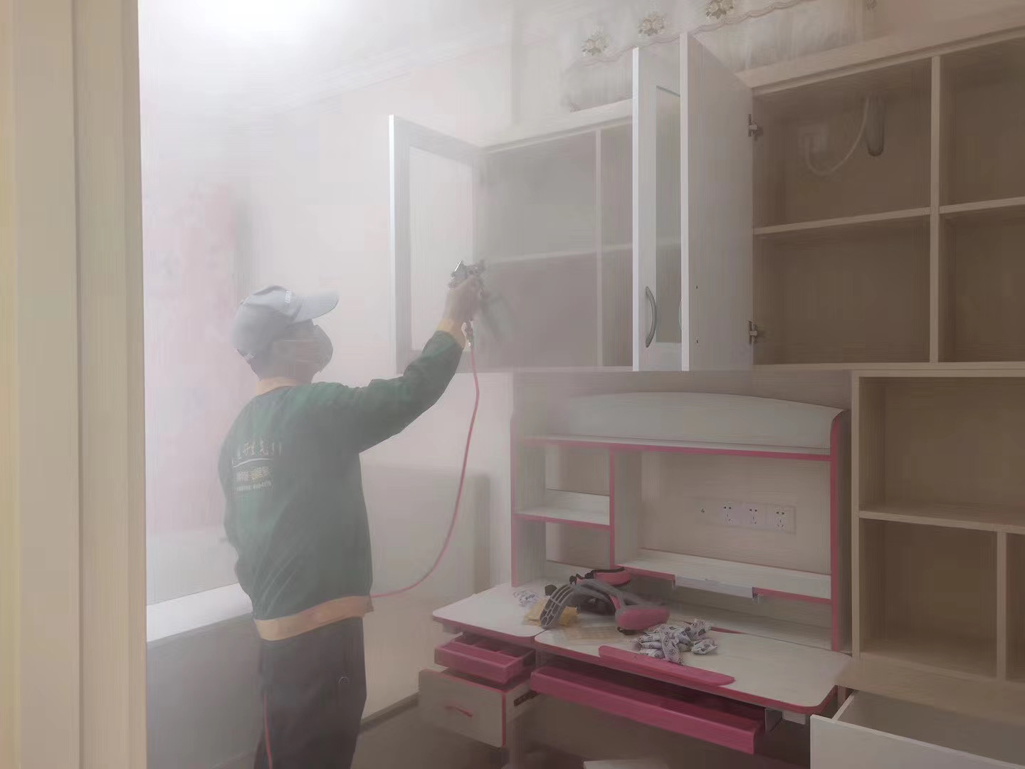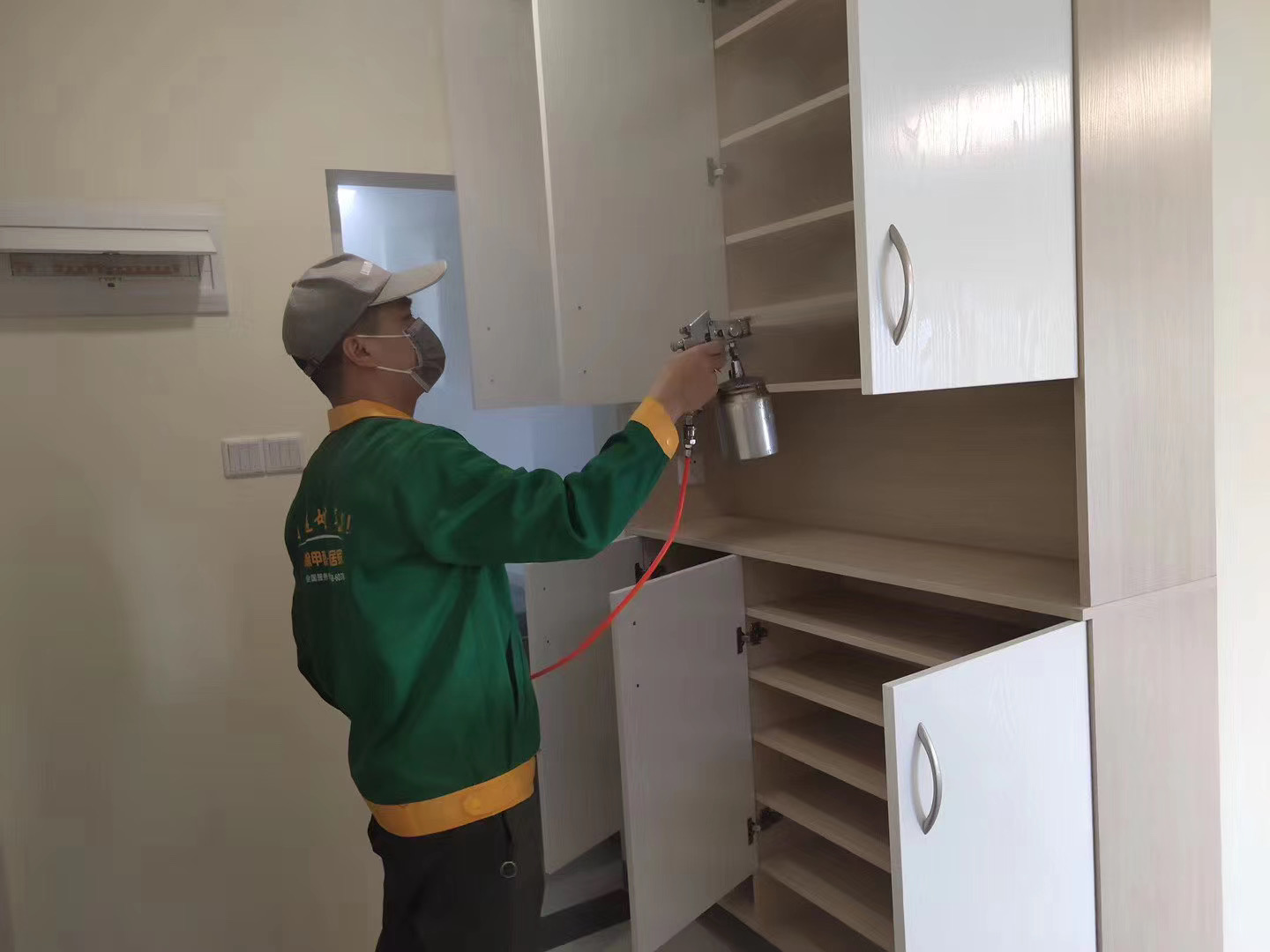 2、綠居家工程師為不宜噴涂的物品做好覆膜保護(hù)工作;