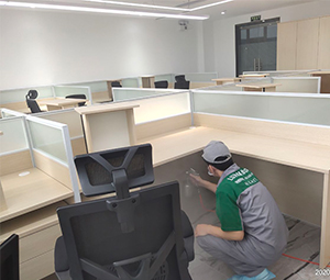 先對(duì)室內(nèi)進(jìn)行精確的空氣質(zhì)量檢測,并對(duì)天花板、墻面、窗簾、辦公桌、辦公椅和文件柜等物品進(jìn)行360°全方位治理。