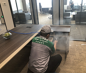 先對室內(nèi)進(jìn)行精確的空氣質(zhì)量檢測,并對天花板、墻面、窗簾、沙發(fā)、柜子、辦公桌和其他家具等物品進(jìn)行360°全方位治理。