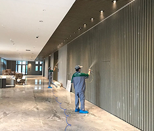先對室內(nèi)進行精確的空氣質(zhì)量檢測,并對天花板、墻面、窗簾、木質(zhì)家具、沙發(fā)、辦公桌等物品進行360°全方位治理。