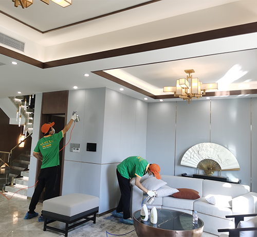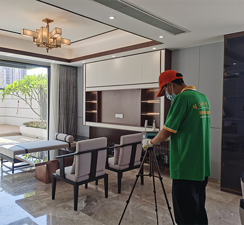 先對(duì)室內(nèi)進(jìn)行精確的空氣質(zhì)量檢測(cè),并對(duì)天花板、墻面、窗簾、沙發(fā)、柜子和其他家具等物品進(jìn)行360°全方位治理。