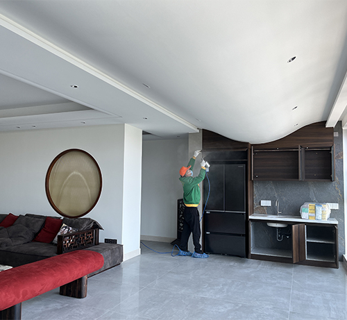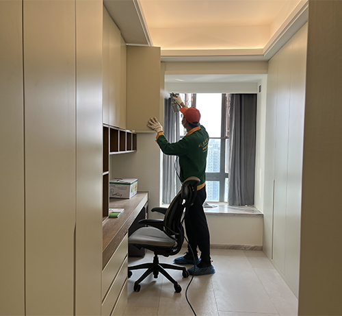 2、綠居家工程師在治理前將不宜噴涂的物品做好覆膜保護工作;