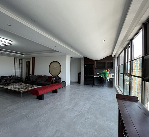 先對室內(nèi)進行精確的空氣質(zhì)量檢測,并對天花板、墻面、窗簾、沙發(fā)、柜子和其他家具等物品進行360°全方位治理。