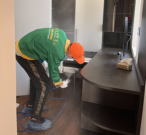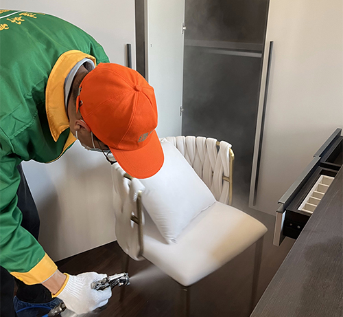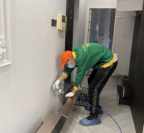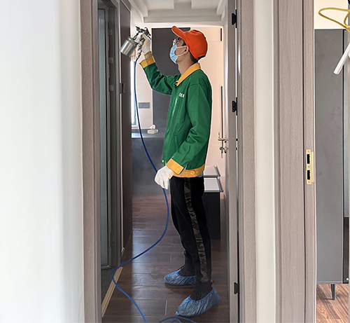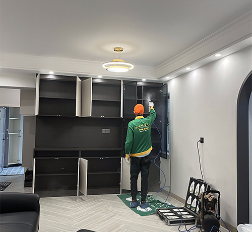 2、綠居家工程師在治理前將不宜噴涂的物品做好覆膜保護工作;