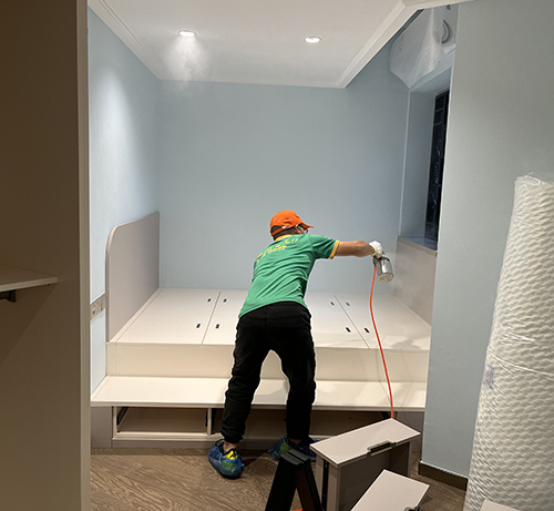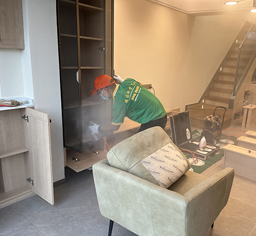 2、綠居家工程師在治理前將不宜噴涂的物品做好覆膜保護(hù)工作;