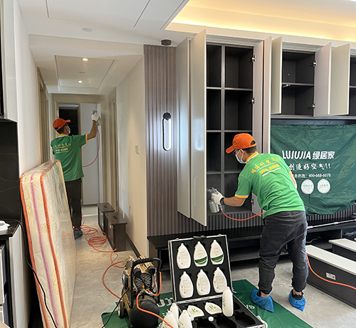 2、綠居家工程師在治理前將不宜噴涂的物品做好覆膜保護(hù)工作;