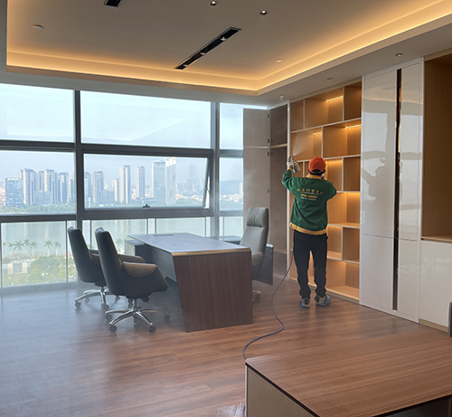 先對(duì)室內(nèi)進(jìn)行精確的空氣質(zhì)量檢測,并對(duì)天花板、墻面、沙發(fā)、柜子、辦公桌和其他家具等物品進(jìn)行360°全方位治理。